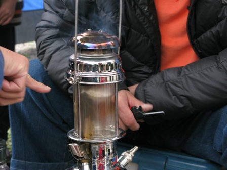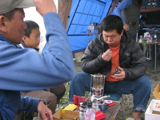 全部裝備架設妥當後,開始悠閒的下午時光。此時,麥坤的手工研磨黑咖啡恰好煮開,喝起熱呼呼的黑咖啡,既可提神又可却寒,在10°c的戶外,真是一大享受。