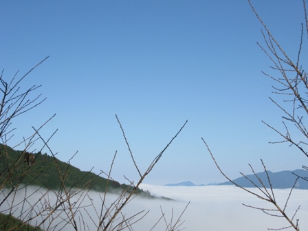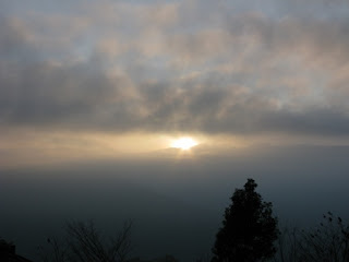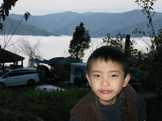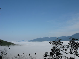 喝完麥坤手工黑咖啡,大開眼界看過自由的燈具、爐具保養大會,大伙又各自偷閒、自由活動,有人串門子、有人攝影、有人看書........,四處晃晃沒多久,突然間一陣騷動,有人大叫『雲海出現囉』,雲海又再度浮現,剛剛還是雲霧迷濛的天空突然放晴,雲層已沉到山腰間、眼前豁然開朗,雲海~~~竟突然出現在大家眼前,難怪會引起騷動,大夥趕緊拿起相機瘋狂拍攝,搶拍雲海。真的很幸運,第一次來到鳥嘴山便可以欣賞如此美景,已經忘了上一次看到雲海的時間,似乎已經很久以前了,相隔多年後又見到,內心有一點悸動,拿起相機四處拍攝留念。