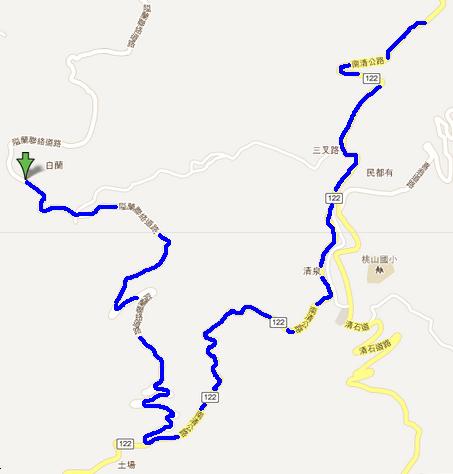 - 122 縣道 50.4 公里 (122 縣道終點處) 右轉隘蘭聯絡道路往白蘭部落方向 (路徑圖一)