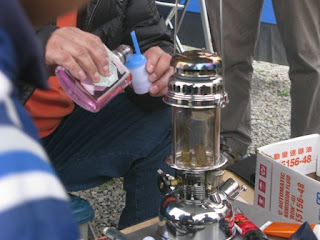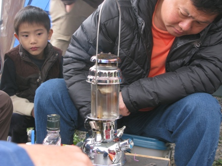 接著,自由與茶葉蛋開始保養燈具、爐具,一群人圍著他們倆,專注地看著他們如何保養、如何玩火。