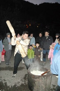 沒多久捕手又廣播了,這次換搗麻糬時間到,那是原住民式的大型搗桿與臼,搗桿有數公斤重,心爸與趴趴鼠叔叔也下場搗了數十下,黏黏的麻糬黏在搗桿上要花費一番力氣才能搗一下,搗完後後背部頓時痠痛起來 @@"