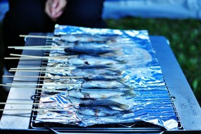 就在準備開始第二局牌局時,捕手廣播可以開始領魚,於是結束了牌局,趕去涼亭那領魚去準備烤魚。
