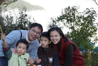 可能前幾天下雨,加上下切路段陽光照射不到,因此路面濕滑,更增添下切的困難度,嗡姑與翔走前面,我與翰走中間,媽媽殿後,一路上腳打橫、踩著樹根、扶著壁面、拉著樹根,抱著樹幹 (這輩子,今天我抱最多樹 @@"),如果失足,那鐵定會十分嚴重,大伙聚精會神、互相幫忙、互相提醒、穩健的往下走,有些路段又窄又滑,不過上天保佑,都很驚險地度過這些難關,翔 跟著嗡姑一定學到很多登山的技巧,雖然他跌倒十幾次,但仍然很勇敢的站起來繼續下一步,也不抱怨也不喊痛,翰 跟著我也很棒,也配合我的要求一步一步踏向定位,跌倒也會勇敢站起來,最後大伙完成任務,通過下切路段,來到平緩的產業道路,再慢慢走回營地,這是我們第一次的登山經驗,相信 翔翰 此行一定獲益良多。