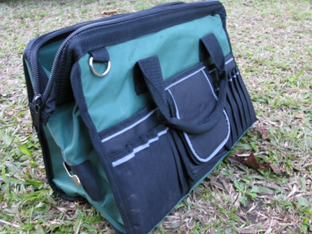 大小符合需求,營錘長度為 38cm,佳鑫五金販賣的工具箱中,小的裝不下營錘,大的寬與高又感覺大了點,最後在特力屋網購找到兼具便宜、耐用、美觀、何用的工具袋。