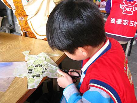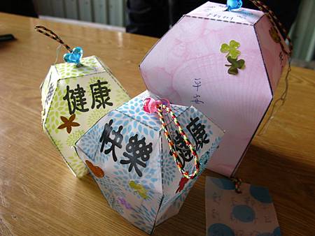 翔翰 各自製作屬於自己的小天燈,心爸心媽 則是趁著空檔輪流製造大天燈,逐步完成祈福天燈製作。