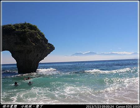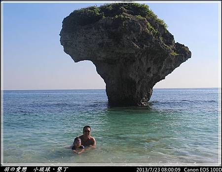 沒想到,這個時刻竟然是大滿潮,心爸 先下水試試海水有多高,確認後ok後,父子三人又跳下海戲水去,心媽 就辛苦點幫忙照相、顧行李