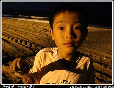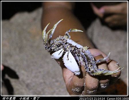 翔 依樣畫葫蘆,依照大哥哥的方法,也抓到一隻沙蟹