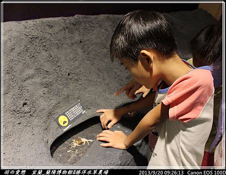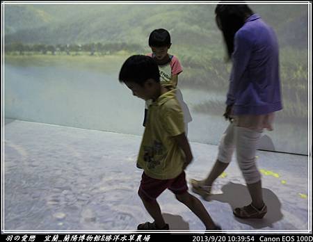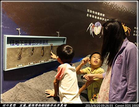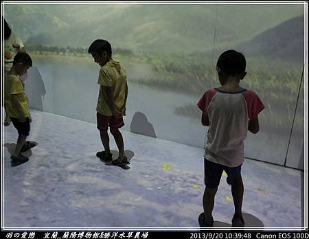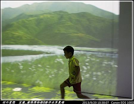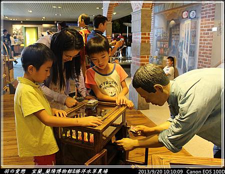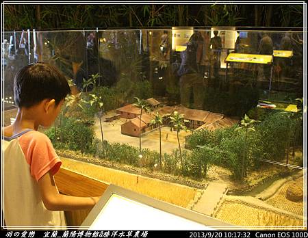 走向三樓的『平原』展區,可以看到宜蘭人文歷史環境,心媽、心爸逐一解說,翔翰 細心聆聽與發問