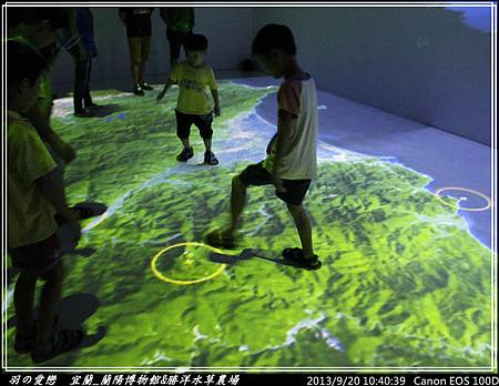最後一項互動是透過投影方式介紹各個宜蘭特有景點,看誰先抵達景點位置並且踩下景點的圈圈,便可達成任務