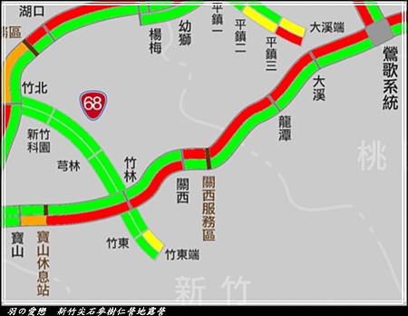 另一個早點出發的理由是,行前接到情報:228假期因六福村特價優惠,關西交流道及平面道路超級大塞車。客官啊~~~看看下面這張圖,關西交流道北上、南下全塞車,卡在車陣中一定欲哭無淚,聽說露友卡在車陣中多達三個多小時@@"