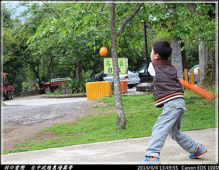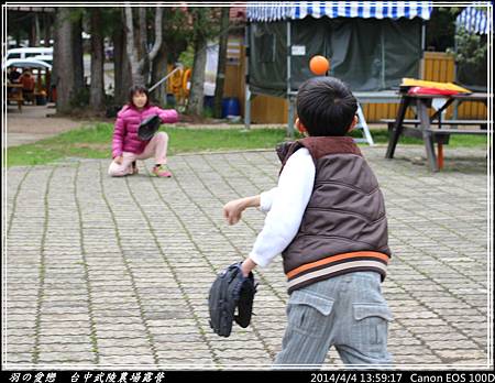 趁著空中帳露友尚未進駐前,打樂樂棒球。還好扯鈴姊姊一同露營趣,翔翰 有伴可以一同打球