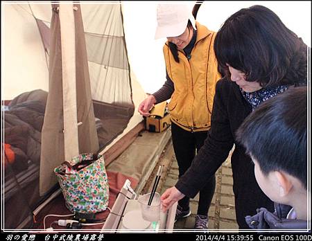 到達營地後,選好風水開始搭帳篷。瞧見嗡嗡嗡自製的門牌,真有特色。這是亮晶晶老師指導媗、竣完成的,剛好亮晶晶老師也有參加露營,所以讓她們製作一些露營可以派上用場的作品