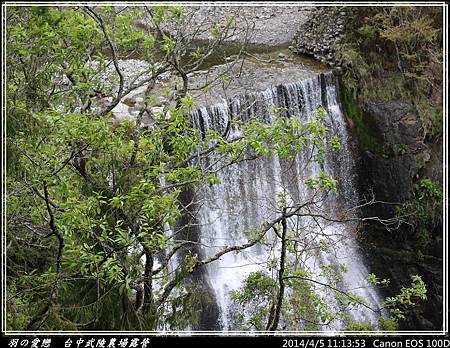 隨著溪水聲愈來愈清晰,我們距離桃山瀑布也愈來愈近。我們是最後一批到達桃山瀑布的人,嗡姑等人早已到達此處休息,見到我們的到來,恭喜 翔 挑戰成功