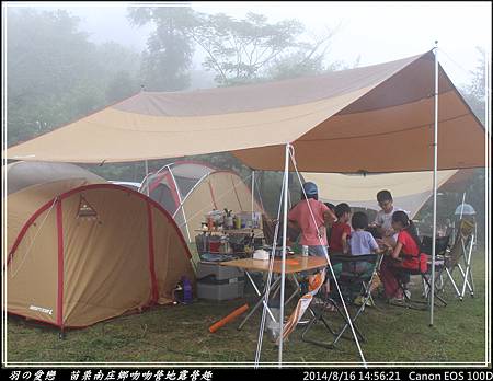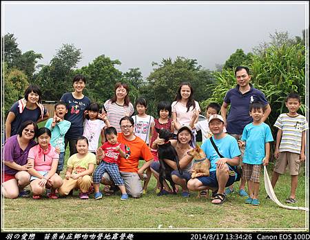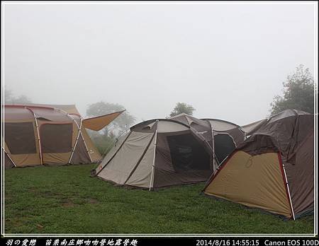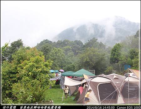 離開加里山步道回到營地後,整個營地又是雲又是霧,天空雲層不斷聚集,似乎隨時可能降下大雨,還是趕緊拔營為妙 !! 所幸最後僅是降下間歇小雨,幸運地全身而退,離開吻吻營地前,來張團體照留念吧 ^^