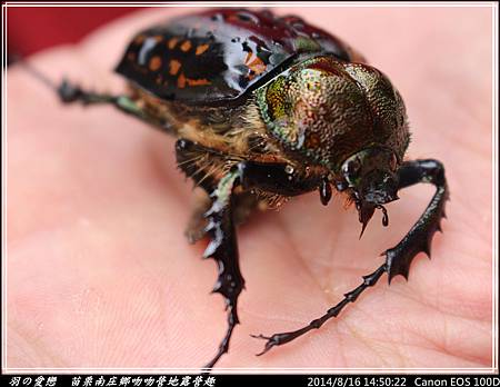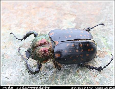 在營地裡巧遇,台灣甲蟲世界的王者 ~~~ 台灣長臂金龜。碩大的體型、強壯的前臂、鮮艷的色彩,不愧是台灣原種甲蟲霸王,讓小朋友們開了眼界