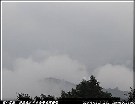 這兩天水氣十分充足,午後更下起傾盆大雨,遙望營地對面山頭,可見風騰雲湧之景,可惜雲霧無法聚集成雲海,少了一味