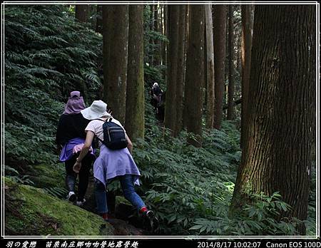 步道上盡是高聳的杉林,枝繁葉茂的杉林遮蔽了炙熱的陽光,一路上非常涼爽