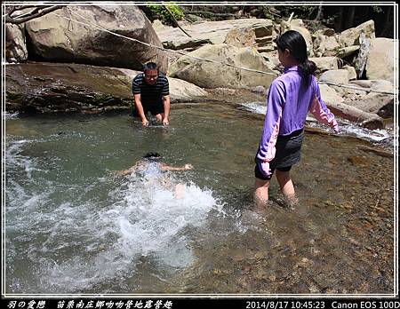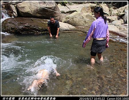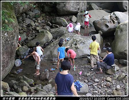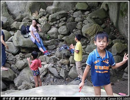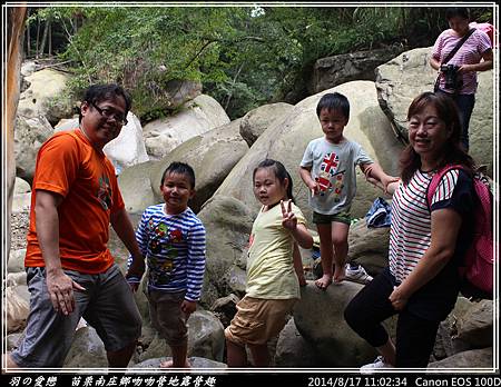 殿後的我們終於抵達溪谷,先行的宅爸、小朋友們早已經戲水趣