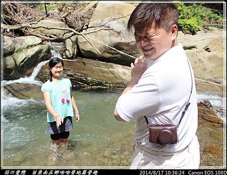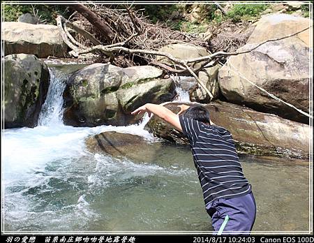 雖然溪水沁涼無比,愛玩水的翰 還是忍不住想跳下去游泳
