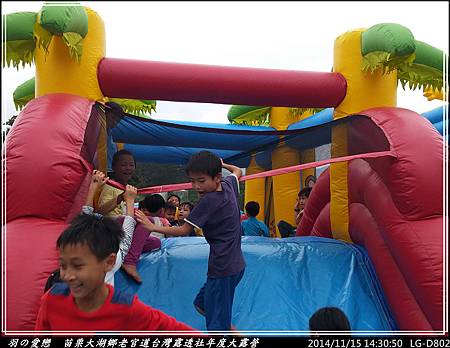 與去年一樣,有小朋友超愛的氣墊遊樂設施,只要小鬼們一到那裡,就如同魔鬼氈般被黏住,尤其當一堆熟識的小朋們混在一起,那就玩得更起勁了 ^^