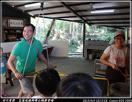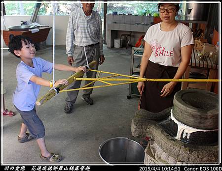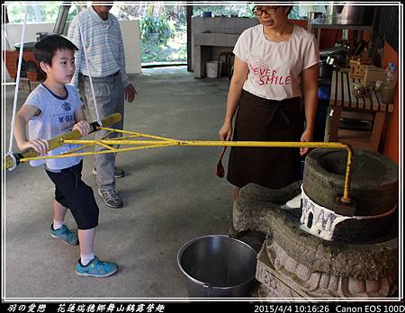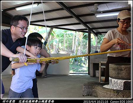 第一組上場的是媗與竣,完全不用蠻力轉動石磨,全憑一股巧勁,所以小朋友也可以快樂參與 ^^