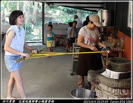 姑娘們也上來試試身手,體驗一下古時磨豆的樂趣 ^^