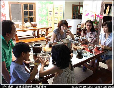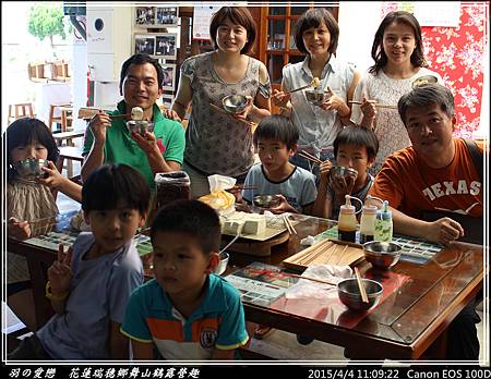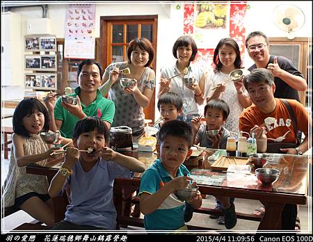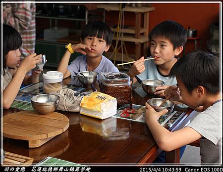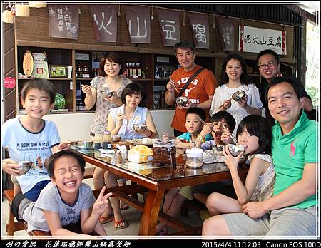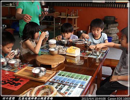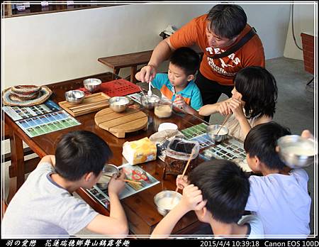 終於有小憩的時光,大、小朋友們圍坐品嚐手做原味豆漿。小朋友則加入少許的糖,喝起來更有味道 ^^"