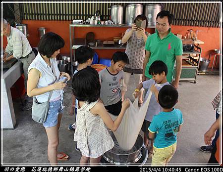 老師也使盡全力,協助將豆漿擠出,不浪費一滴滴的豆漿 ^^