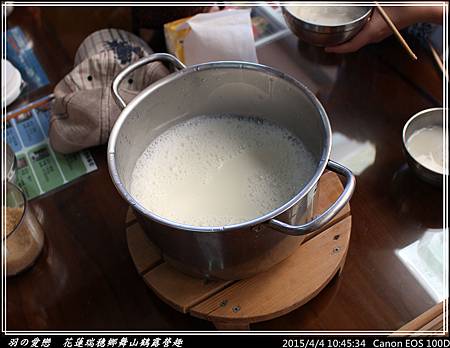 趁著尚未加入天然泥火山滷水前,舀出一鍋豆漿,讓大夥可以先喝喝親手做的原汁原味香醇豆漿