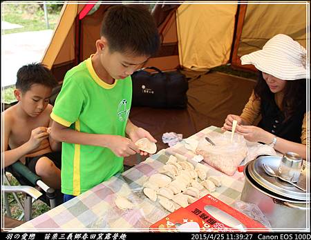 今天的中午,心媽為我們準備手做水餃當作午餐,她先在家中將餡料料理好,再帶到營地,一家人一起包水餃
