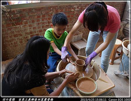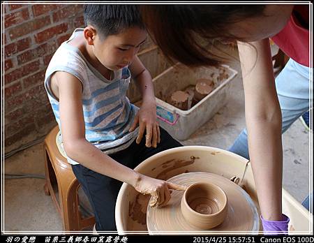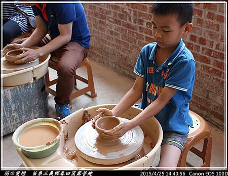 本來還在外面遊蕩的 翰,終於也被我抓進體驗教室 ^^" 跟哥哥一樣,本來抗拒,絕不做 diy 的翰,看到別人捏陶的樂趣後,也坐下來玩手拉坯