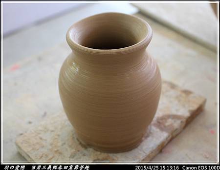 花瓶當然也要來點不一樣滴,在瓶口附近做點花樣,用雙手將花瓶內凹。成品看起來不賴吧 ^^