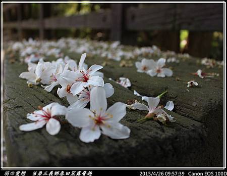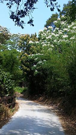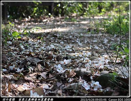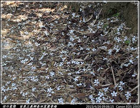 即便如此,高聳在樹梢的油桐花,仍然如雪花般飄落,將土地染成雪白色,一大片、一大片地散落在地面上。偶有旋轉飄然降下的油桐花,讓五月雪的美景,近在眼前發生 ^^