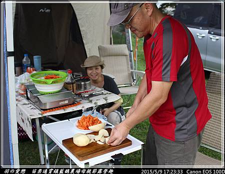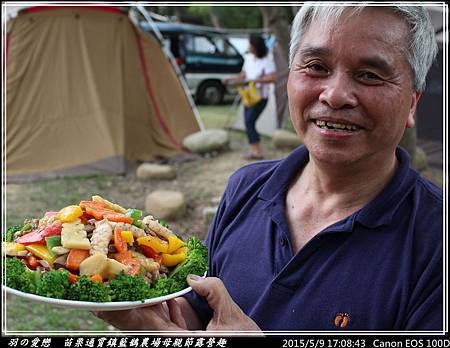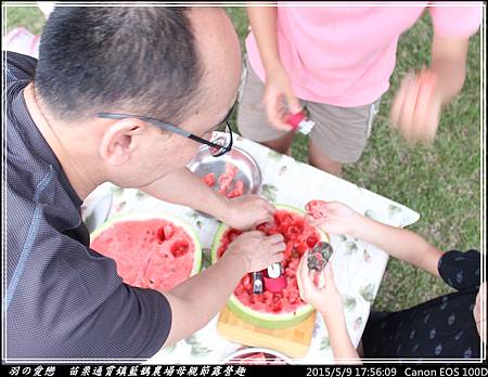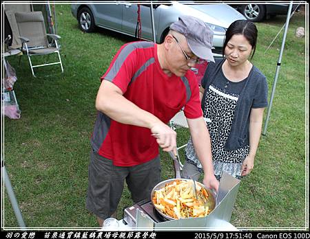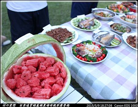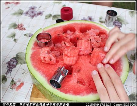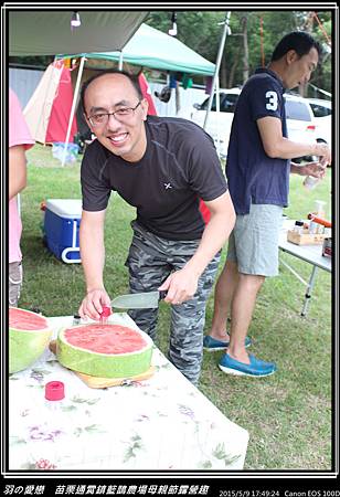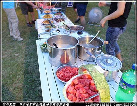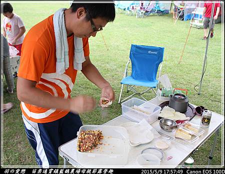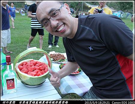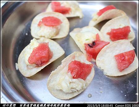 接下來出場的兩位老杯,則是提供飯後最重要的甜點與水果。首先是露營前一日還在思索創意料理的豆爸,在閉門苦思下,創造出這道『洋芋片榴槤西瓜沙拉』,果真是一道創意料理^^
