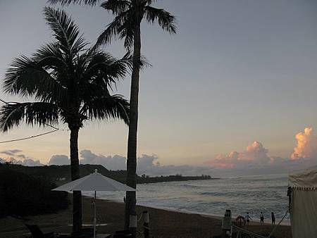 吃完後夜幕已低垂,上弦月也低低地靠近海平面,好像隨時要沉入海裡,月光映照在海上,灑下一片白熠熠的光影,把握在『夏都』的有限時間,麻麻提議讓小朋友到沙灘玩沙,在夏都的夜晚沙灘上,背後傳來 LIVE BAND 的歌聲,看著小孩嘻笑玩沙,麻麻信步在沙灘上,又是一個美好的夜晚。