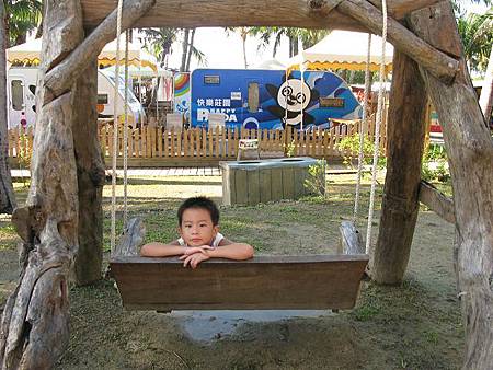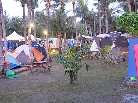 用餐後,前往距離『阿利海鮮』 約十分鐘車程的『快樂熊貓營地』,抵達後一映入眼簾的南洋風的營地,迎風搖曳的椰林草地營地,白砂灣海灘與陣陣浪花隱隱約約出現在椰林、帳篷與露營車之間,仔細聆聽還可以聽到海浪拍打沙灘的聲音。不過剛好遇到暑假的周末假期,人聲鼎沸,遊客眾多,希望這兩天入睡時可以安靜一些些。