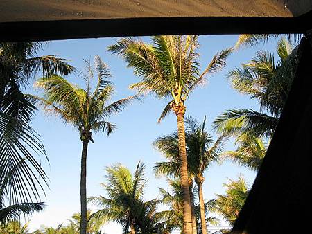 回到帳篷內,在行軍床上往外瞧,椰林就在眼前,鳥聲、浪聲此起彼落,再搬出巨川椅坐在帳前,在微涼的海風輕拂下,聽著哼著懷舊歌曲,真的是人生一大享受。
