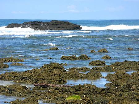 『萬里桐-潮間帶』距離營地不遠,約十分鐘車程可到,萬里桐屬於一個寧靜的小村莊,有潛水及潮間帶生態解說活動,與之前的沙岸景觀不同,萬里桐屬於岩岸地形,在潮起潮落之間,擁有豐富的生態。