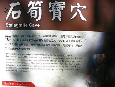 很特別的仙洞,內有許多鐘乳石,園區也發揮創意,幫有造型的鐘乳石取名稱,看著告示牌上的說明與圖示,還真有點神似呢