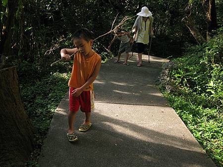 後段路程中,翔翰 找到新樂子,他們倆當上國家公園的義工,拿起路邊的樹枝當作掃把,一路上就這樣掃阿掃的,將路上的落葉全部掃到路邊去,將近掃了一個小時,也不喊累~~~園方要頒個獎狀給他們兩個啦~~~