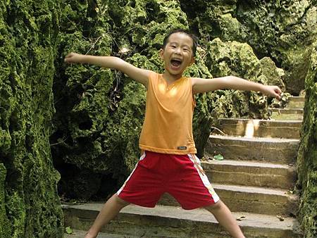 走到觀海樓後,剛好是A,B兩路線的分歧點,若要再走B路線觀看一線天、棲猿崖等景點,就要多走80分鐘的路程,詢問 翔翰 要不要挑戰看看,他們也欣然同意想要一探究竟。