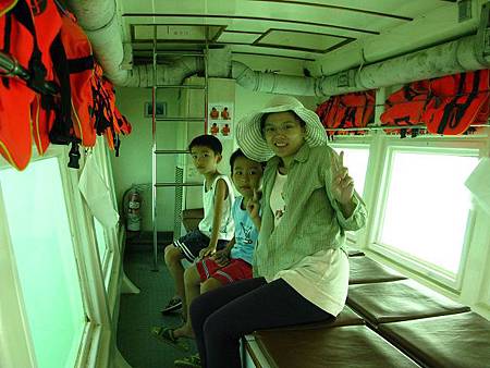 進入第三天旅程,早餐後前往約十分鐘車程的『後壁湖港口』準備搭乘『半潛艇』船隻,前往後壁湖港外海,觀賞墾丁海底美景。等待數分鐘後,於九點搭船出海,船隻出港後,海水漸漸清晰,可以看到海底珊瑚礁及各種魚類,我是很想到看海龜與鯊魚@@",但是沒見著。