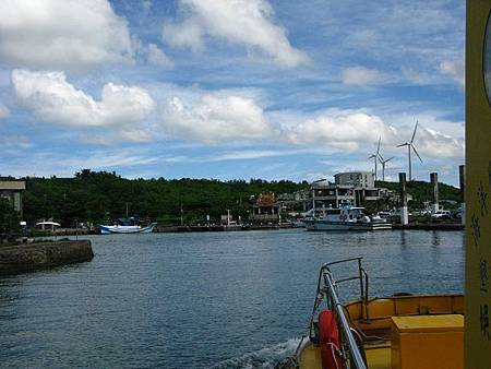 今天的風浪有點大,船隻搖晃也大,在船隻即將入港的前五分鐘,原本前一刻還在船艙下觀賞海底美景的遊客,全部登上甲板看海。瞧著遠方烏雲密布,不禁擔心起來,於是與全家人商量好,待會馬上回去拔營再做打算。