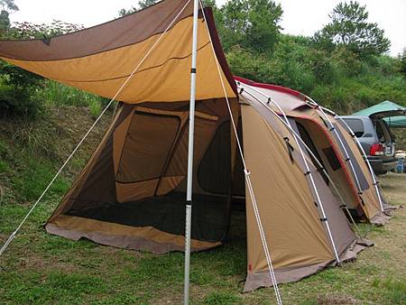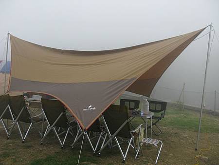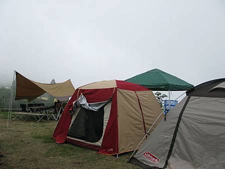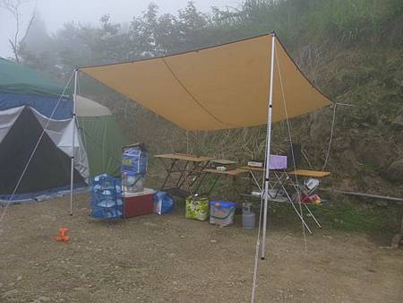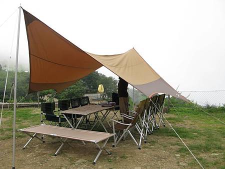 拉回營地話題,由於我們這次共有九個家族要參與這場露營盛會,剛好把松野上層營地給塞滿,本週末獨享這塊營地,為了讓大家在休憩、用餐時可以有更好的視界,與嗡爸討論後,決定將天幕架設在視野最佳的地方,而各家族的戶外別墅則於天幕兩側紮營。