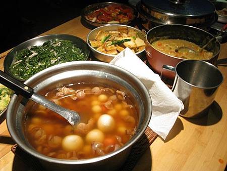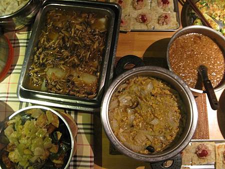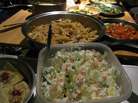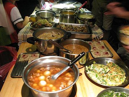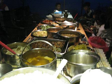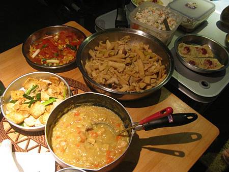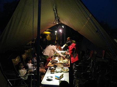 醒來後,伙房大隊又開始忙進忙出,為大家張羅 buffet 星光晚餐,每個家族各自準備拿手料理一饗早已飢腸轆轆的五臟廟。最後上桌的有 20 幾道菜,就像 buffet 一樣菜色多到爆,我又吃到撐撐撐 @@" 唉~~~~露營雖然活動量大,但是吃得更好更多,圓圓的大肚腩,沒變消瘦反而變得更圓滾 @@"