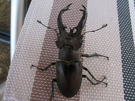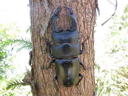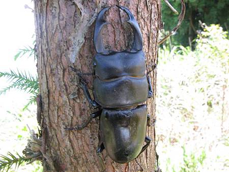 影片播到一半,嗡姑 手中帶來一位嬌客,好大的一支鍬形蟲喔 ~~~~,我還第一次親眼看到如此大的鍬形蟲,尤其是它的一對大螯更是特別,趕緊放入生態箱中,讓小朋友們可以就近觀察。加上隔天抓到的另外兩隻大鍬形蟲,讓人對於雪霧鬧的豐富生態感到不可思議。雖然短暫放入生態箱,我們仍教育小朋友們,野外的生物最後仍要回歸大自然,離開營地之前,就必須讓它們回歸山林,這也是我們對於小朋友的基本要求。