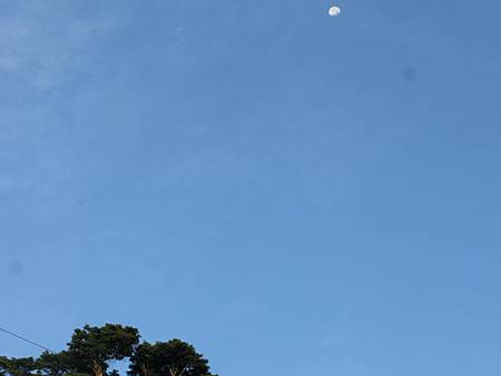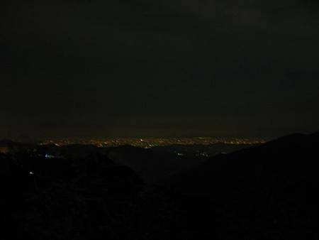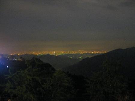 除了百萬夜景外,月亮也不甘寂寞,一輪明月從夫婦山的兩座山頭間探出頭來,薄薄雲霧環繞其中,更顯得嬌美,雖然沒有繁星點點,也不減損她的美貌。
