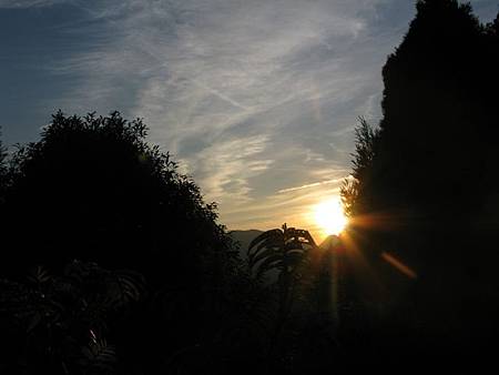 深夜的溫度雖然冷冽,但是睡在睡袋裡,倒也是格外舒適,讓人一覺到天亮。凌晨五點多,看到心爺爺已經起床,拿起手機猛拍照,原來是太陽即將東昇,阿~~~果然是早起的鳥兒有蟲吃,只有心爺爺、阿兵哥家族有機會一睹旭日東昇的宏偉氣勢,只要再早五分鐘起床我也可以看到,噯呀~~~真是可惜~~~