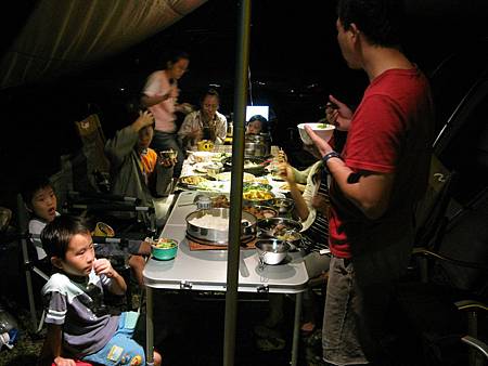 告別生態池回到營地,已經將近五點了,晚餐時刻即將到來,這次營光晚餐很特別,先上前菜、再上主菜,要慢慢填飽眾人的胃 ~~~ 感覺好像溫水煮青蛙,不知不覺肚子又變大了 @@"