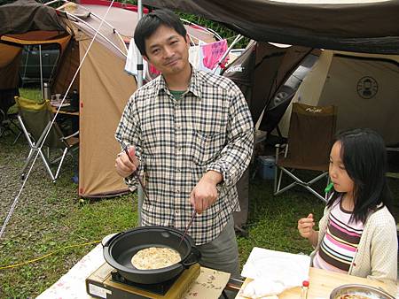 可爸 可是有練過的喔,這位大廚準備了抓餅與麵食一饗眾人。